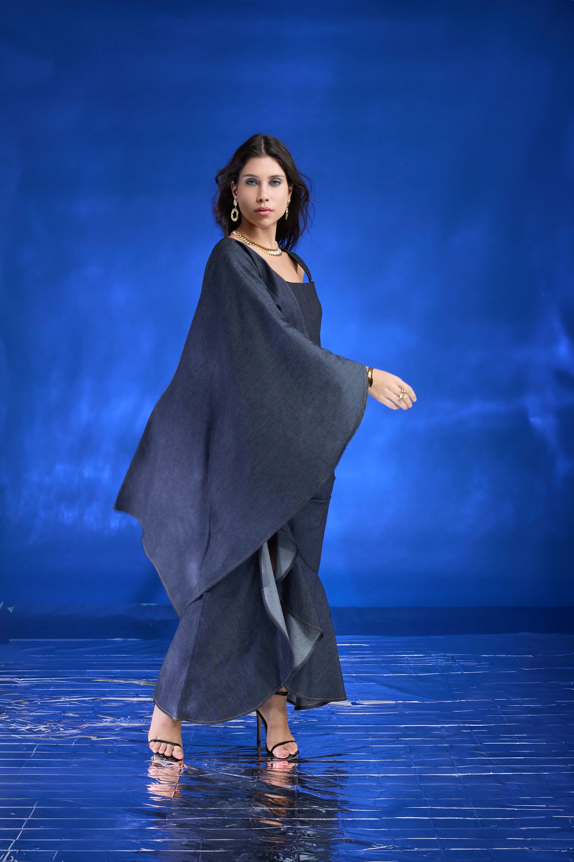 This name encapsulates the blend of traditional and contemporary styles, highlighting the unique denim fabric in a saree form.